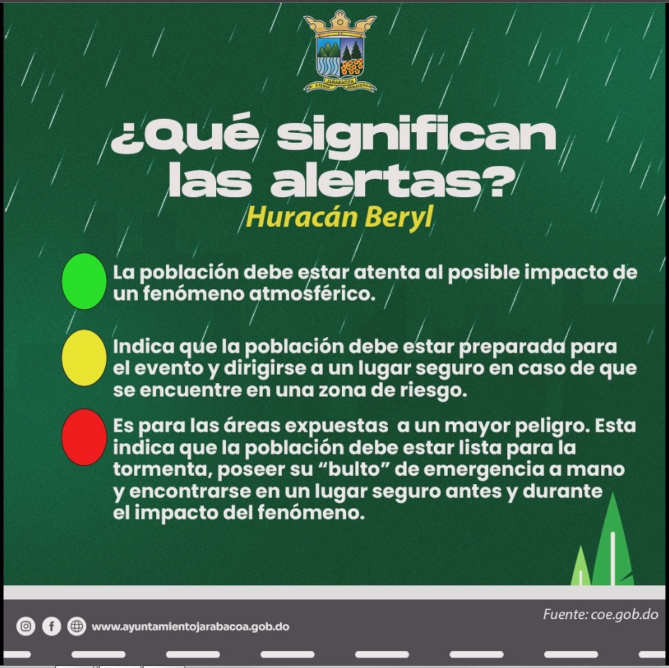 Ante el paso del Huracán Beryl, el Ayuntamiento Municipal de Jarabacoa insta a todos a seguir las alertas de seguridad emitidas por las autoridades. Manténganse informados a través de canales oficiales.