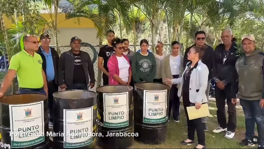 Ayuntamiento Municipal de Jarabacoa, en su misión de fortalecer el desarrollo y la educación, realizó la entrega de tanques de basura al Politécnico María Auxiliadora, en apoyo a su programa de manejo de residuos y compostaje. La entrega fue encabezada por el Encargado de Recursos Humanos, Ormedi Castillo, acompañado por el Agr. Luis de la Cruz, Encargado de la UGAM; el Ing. Roberto Abreu, Encargado de Obras Municipales; Junior Mena, de la Oficina de Libre Acceso a la Información, y Guyenda Durán, Enlace del SISMAP.
