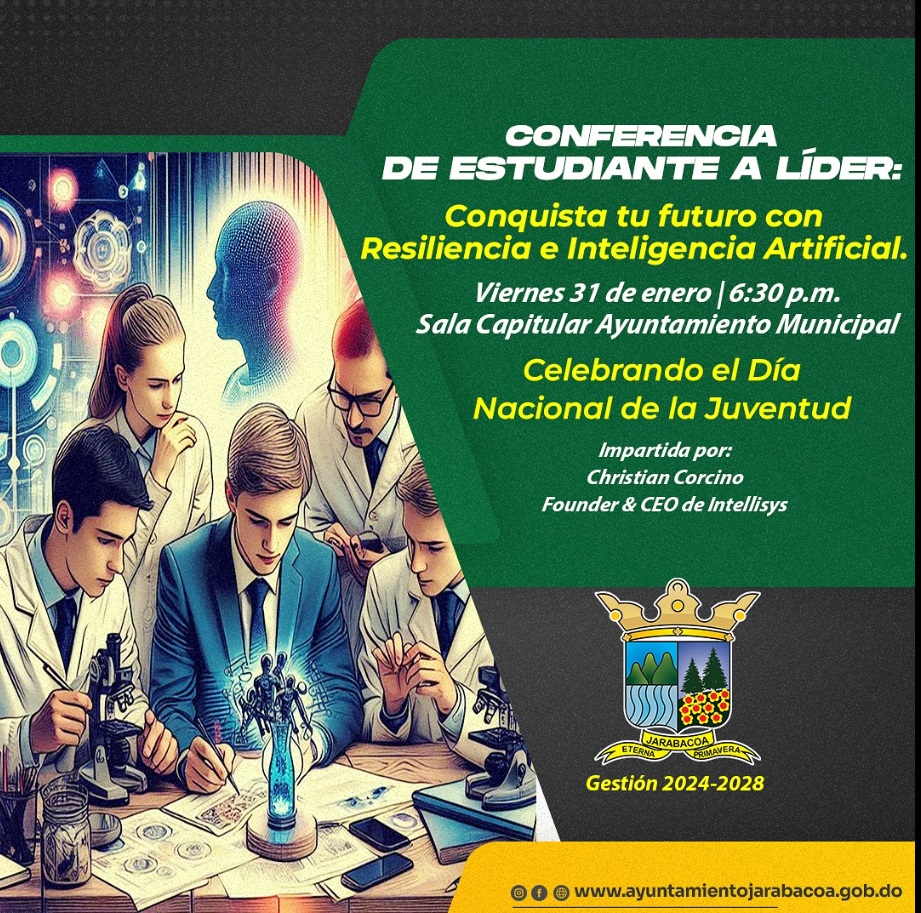 Este viernes 31 de enero celebramos el Día Nacional de la Juventud con una conferencia imperdible sobre resiliencia e inteligencia artificial, impartida por Christian Corcino, Founder & CEO de Intellisys.