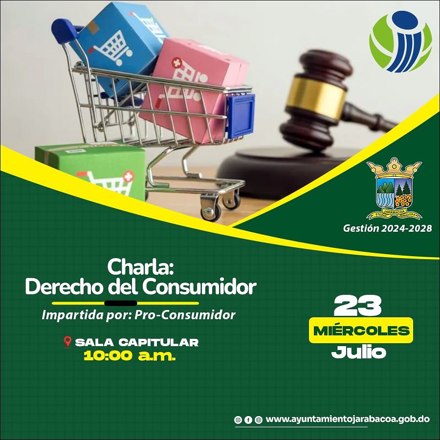 Este miércoles 23 de julio, acompáñanos en la Charla sobre Derecho del Consumidor, impartida por Pro-Consumidor en la Sala Capitular del Ayuntamiento a las 10:00 a.m.