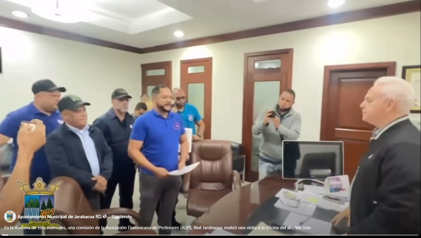 En la mañana de este miércoles, una comisión de la Asociación Dominicana de Profesores (ADP), filial Jarabacoa, realizó una visita a la oficina del alcalde municipal, Lic. Joselito Abreu, con el objetivo de hacer entrega formal de un documento relacionado con la construcción de los parqueos municipales.