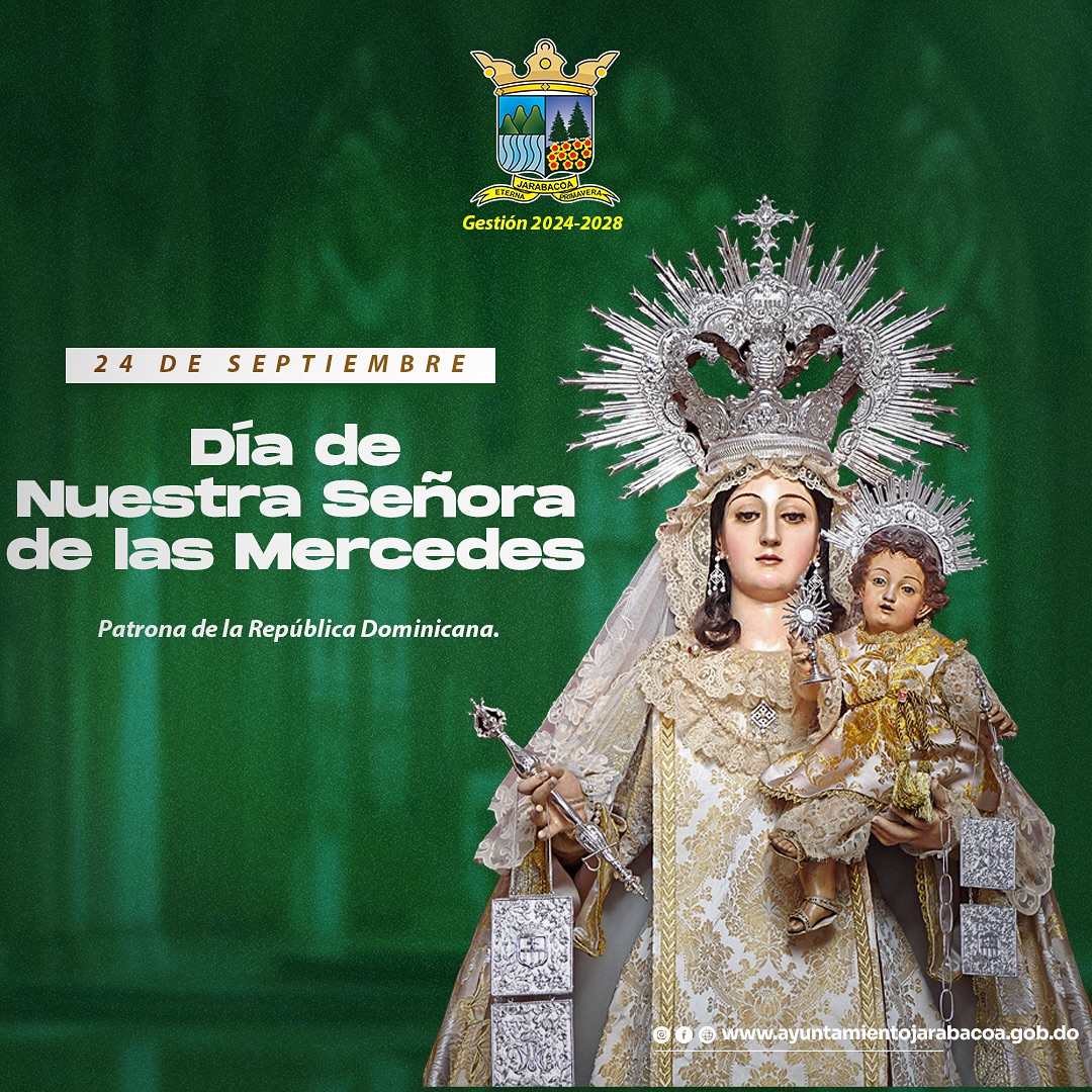 Hoy celebramos el Día de Nuestra Señora de las Mercedes, patrona y guía de nuestra fe. Que su protección nos inspire a seguir construyendo un Jarabacoa más solidario, lleno de paz y bendiciones. ¡Un día para fortalecer nuestra fe y unión como comunidad!