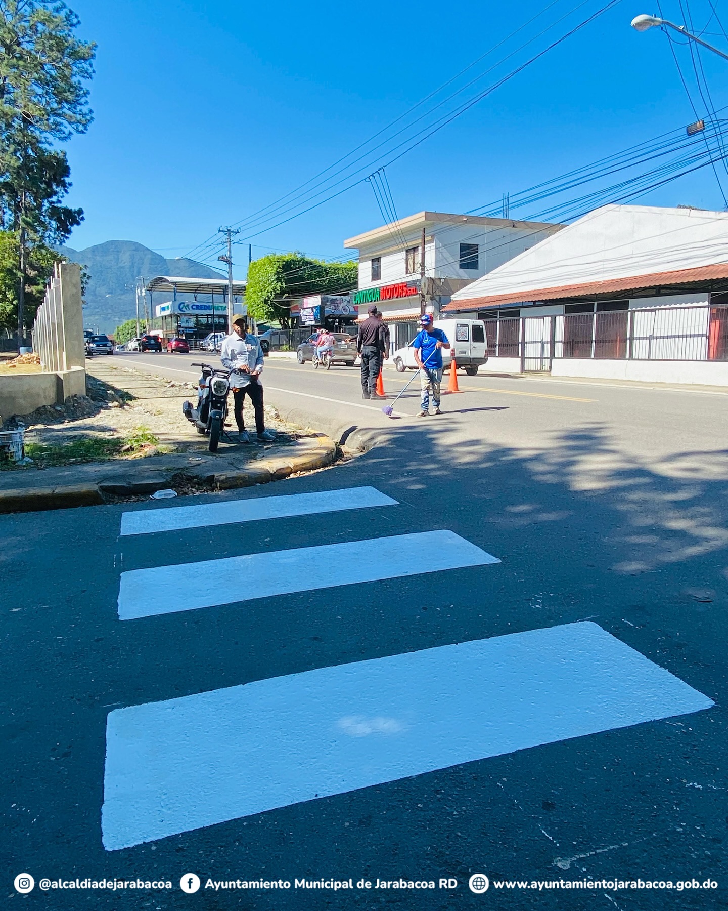 Nuestras brigadas continúan con el operativo de señalización en todo el casco urbano, pintando pasos peatonales para hacer de nuestras calles espacios más seguros y organizados.