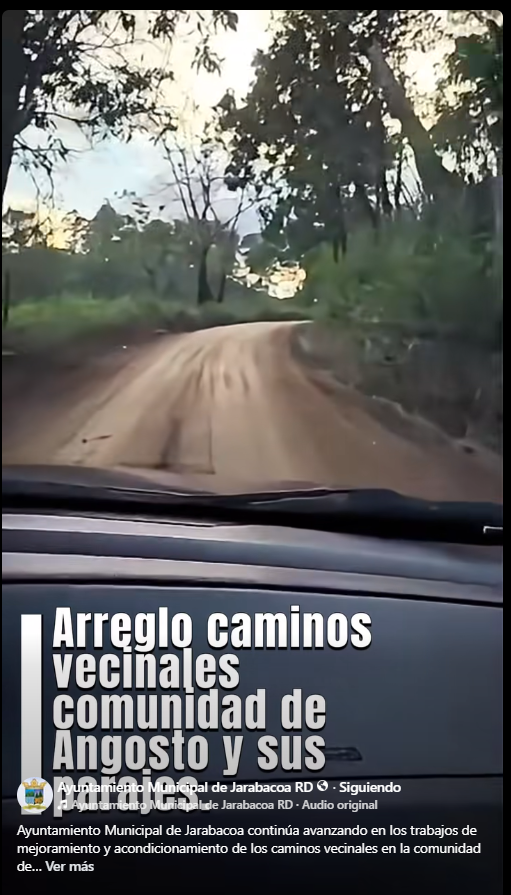 Ayuntamiento Municipal de Jarabacoa continúa avanzando en los trabajos de mejoramiento y acondicionamiento de los caminos vecinales en la comunidad de Angosto y sus distintos parajes, con el propósito de facilitar el acceso y mejorar las condiciones de sus residentes.