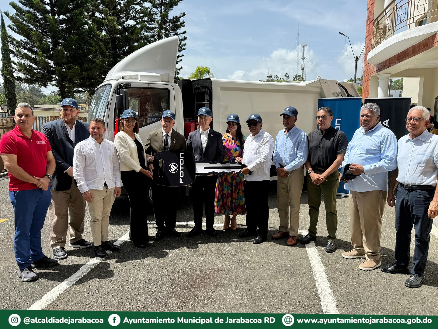 Le acompañó la ex regidora Rafelina Díaz, el empresario Andrés Dilonex, enlaces entre la Embajada China y Jarabacoa, y gestores de esta significativa donación. También estuvieron presentes la vicealcaldesa, Dra. Alba Yris Rodríguez; el presidente del Concejo de Regidores, Lic. Roberto Ureña; el regidor Alfredo Abreu; el Sr. Manuel Agomas, presidente de la empresa Automía y de Foton en República Dominicana; así como una representación del Consejo de Apoyo a Jarabacoa encabezada por su presidente el Sr. José Tejeda.